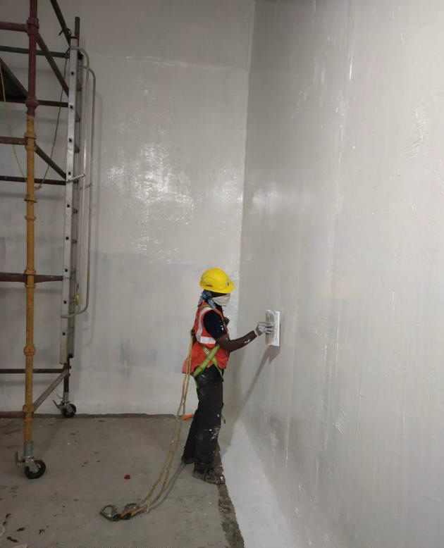 Taking into consideration the strength and the mechanical and chemical resistance properties that needed for, our HYPERDESMO®-2K-W was selected and applied on surfaces as it produces a strong yet flexible impermeable membrane that has excellent resistance to acidic and basic environments. The build-up system included also the AQUASMART-DUR primer and the HYPERSEAL polyurethane sealants for joint protection and waterproofing.