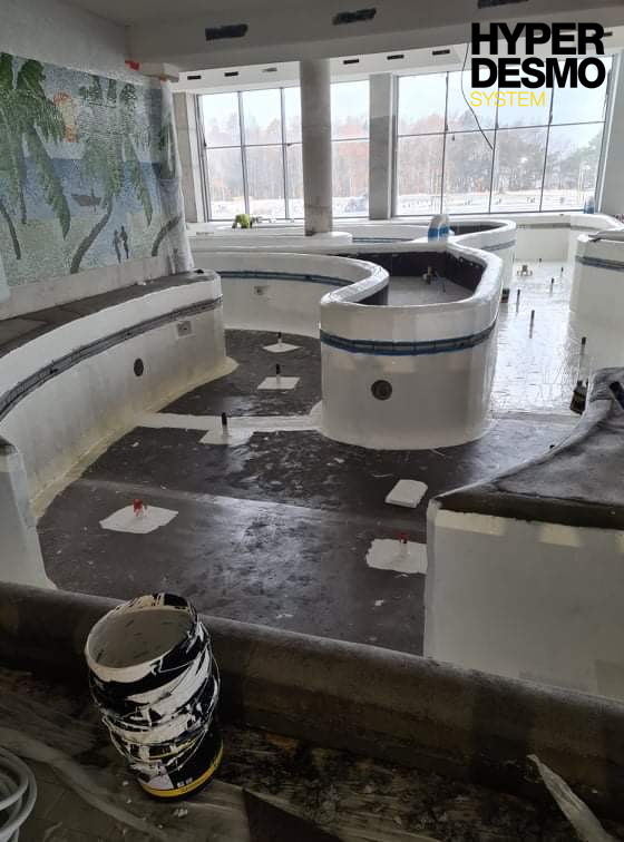 Our products were chosen to complete the waterproofing and protection of some parts of Gołębiewski Hotel aquapark which is located in the Baltic Sea region of Pobierowo. The hotel can be described as a unique complex that includes 16 conference rooms, two cinemas, SPA, sports fields, a year-round ice rink, a climbing wall, and of course an aquapark with slides, saunas, so-called wild river with artificial wave, swimming pools and jacuzzi both indoors and outdoors.
